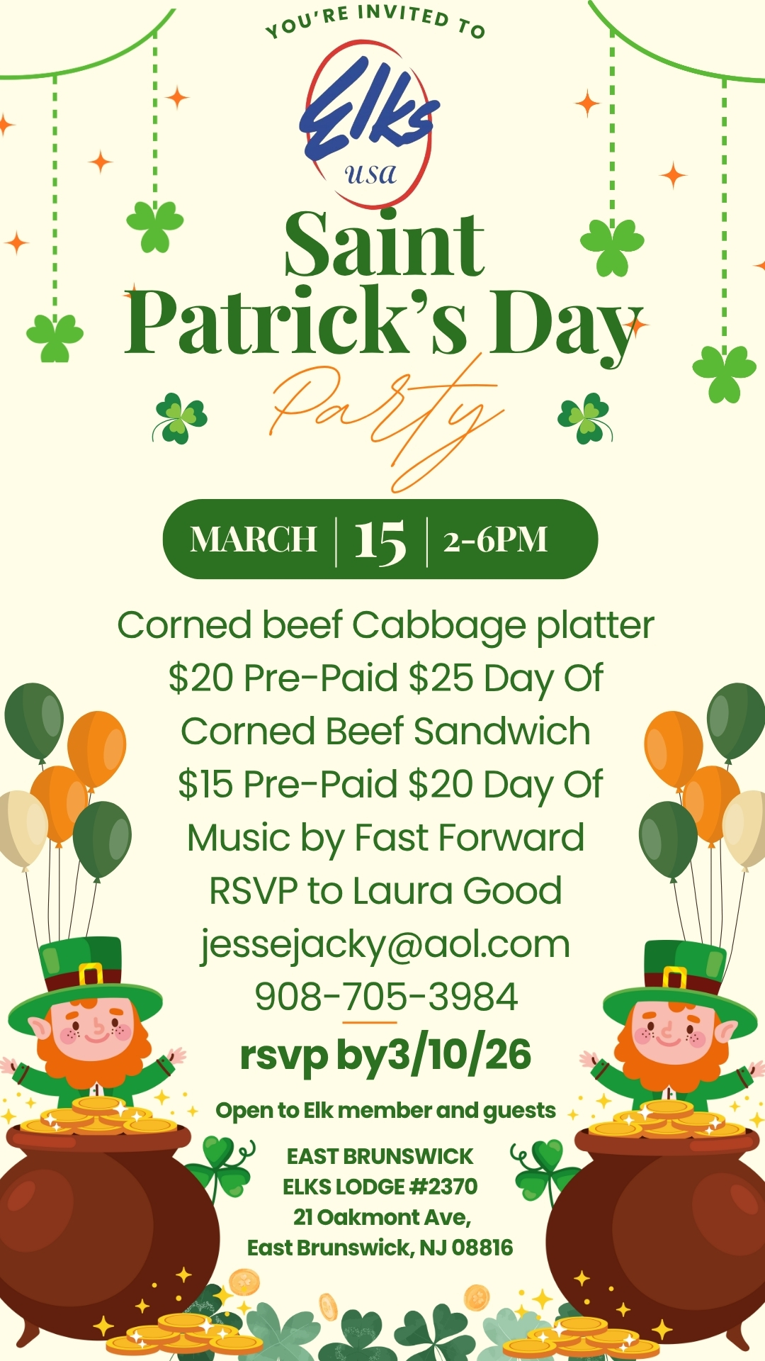 Mailing Address: East Brunswick Elks-Lodge #2370, PO Box 120, East Brunswick, NJ 08816